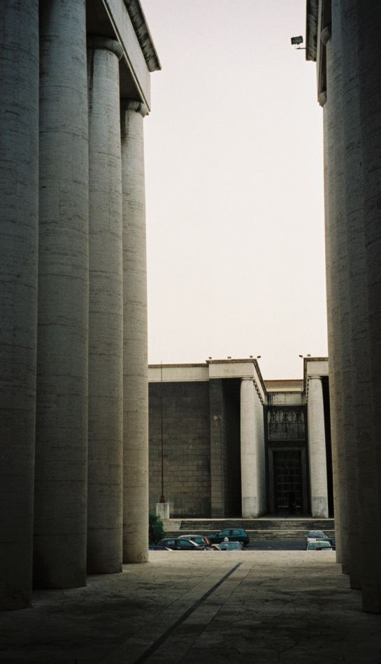 og dro til Mussolinis mønsterby E.U.R. (Esposizione Universale di