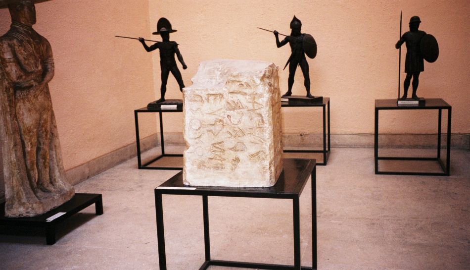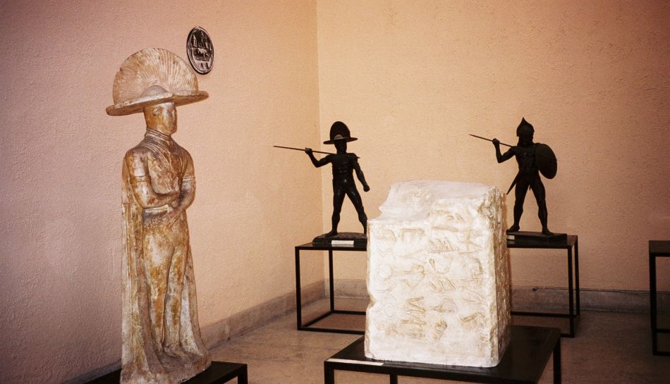 Blant etruskiske krigere står Lapis Niger, hvis original befinner seg