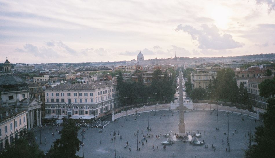 gjennom Villa Borghese og Monte Pincio og ned til Piazza del