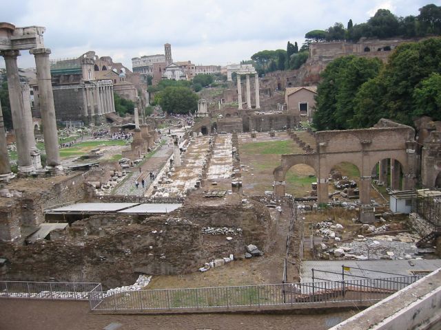 Mandag: vandring gjennom byen til Kapitol og Forum Romanum